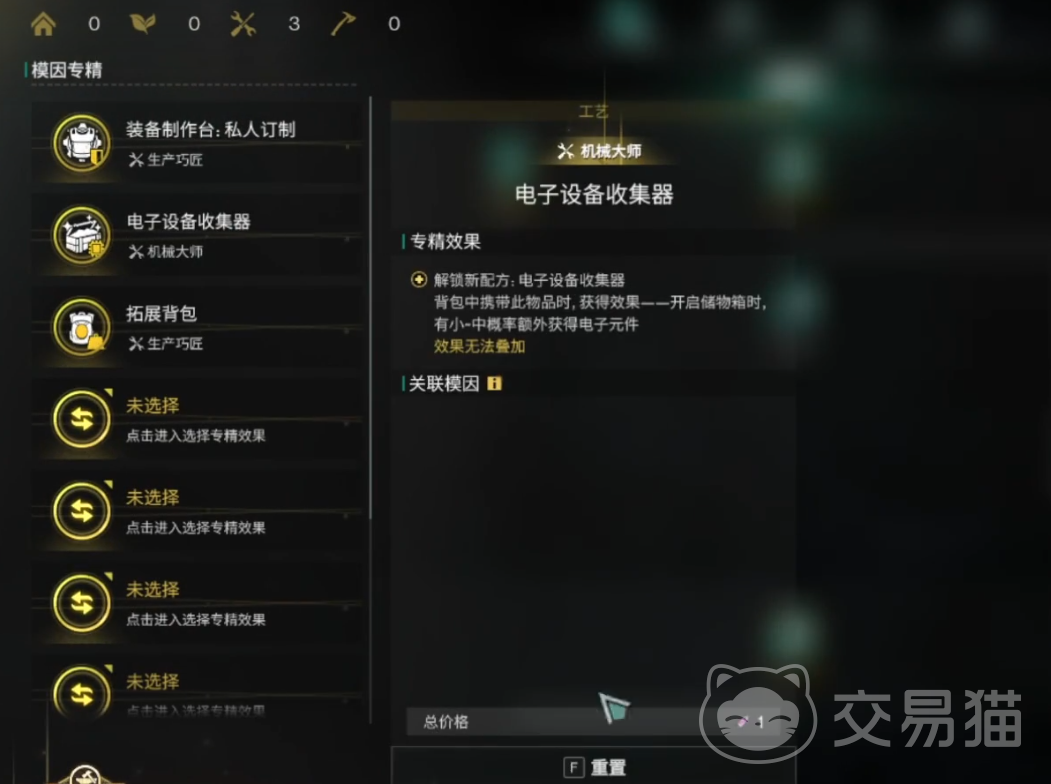 拆解台,有精细拆解和电子回收,这两个要点出来,也是资源型的专精