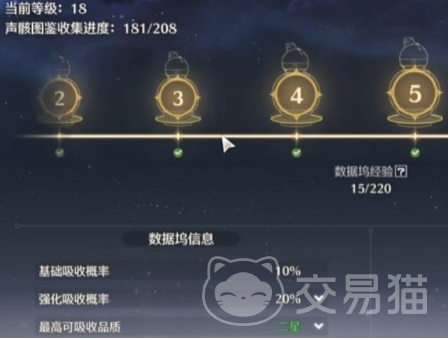 在这里主要的是玩家在游戏中有两个关键的数据坞等级不要错过,第八级和第十五级。因为这第八级的时候就会掉落紫色的声骸,在十五级的时候就会掉落金色的声骸。注意这两个等级能让玩家在前期获得大量的数据坞经验值,在后期就不容易卡级了。