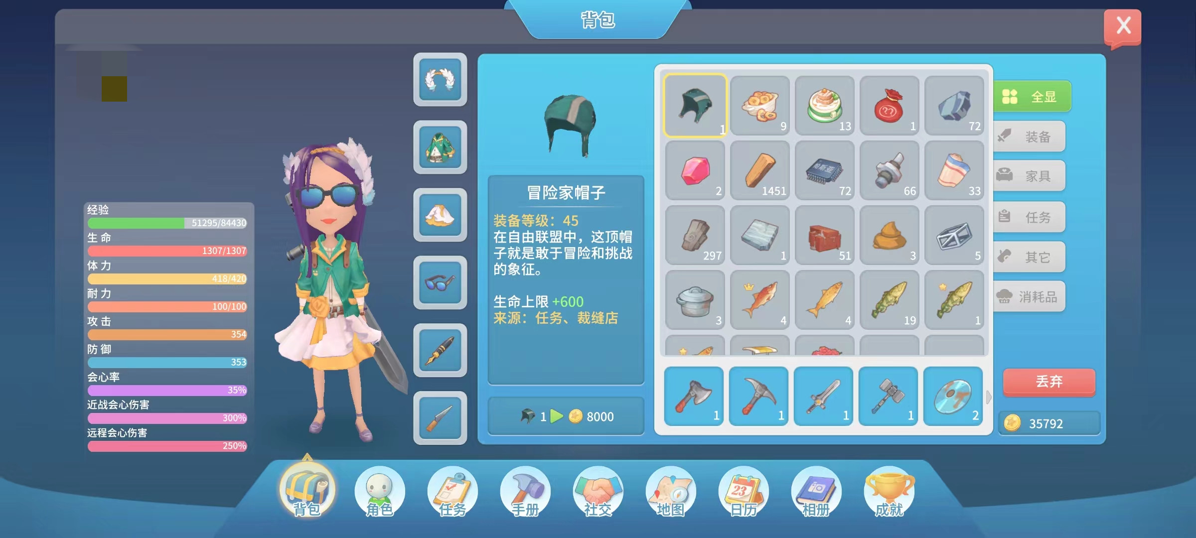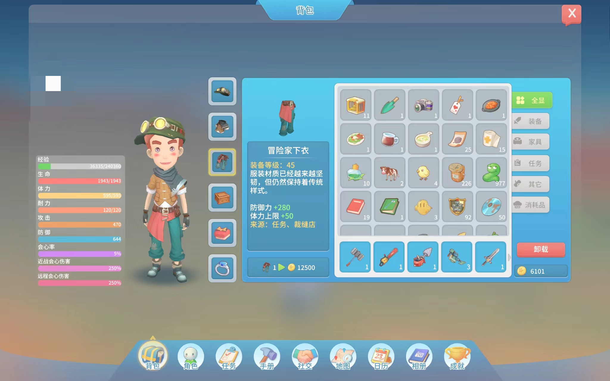 例如冒险者套装就是很合适的选择,在大家45级的时候就可以穿上,冒险家的帽子能够增加600点生命上限,冒险家的下衣可以提高280点防御力和50点体力上限,这都是很好用的装备。除了副本中可以获得装备之外,大家也可以通过各种任务和自己制作进行补充,多项途径结合起来才能得到最好的装备。