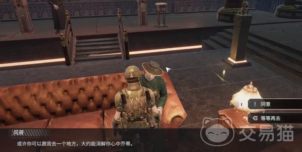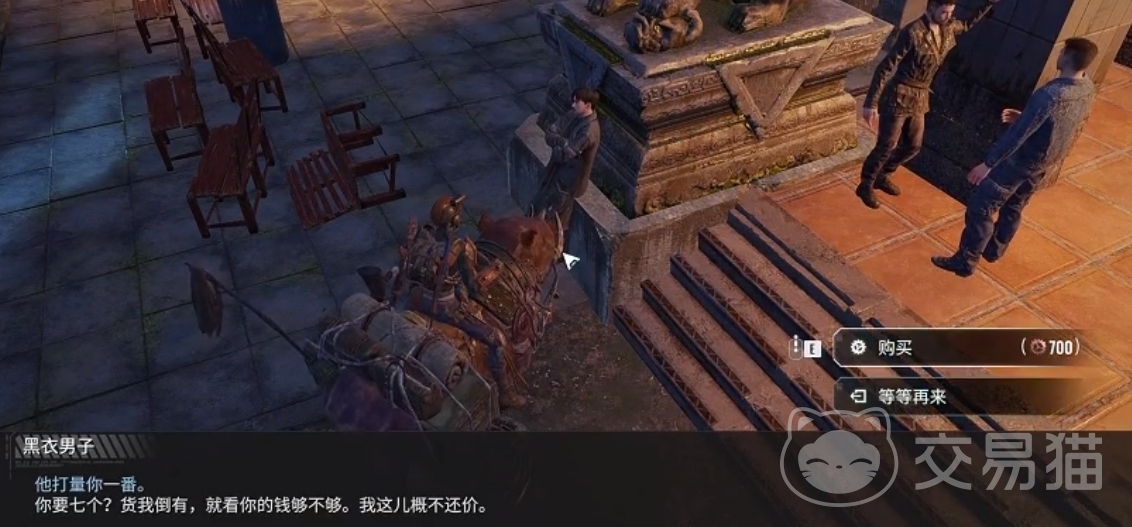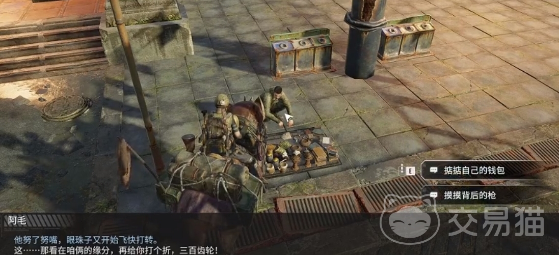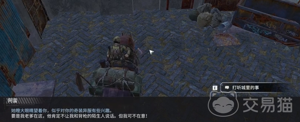 找到夜珍珠会所门口摆摊的【阿毛】,这个任务只需要和他购买纪念品就能完成。