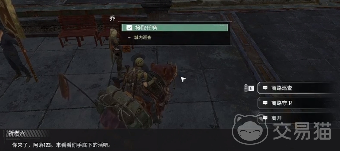 在斧头帮广场附近找到【祁老六】领取任务,任务有两部分:一是商路守卫;二是城内巡逻。根据任务去野外通关副本完成商路守卫拿经验,然后再在去城区巡逻下。
