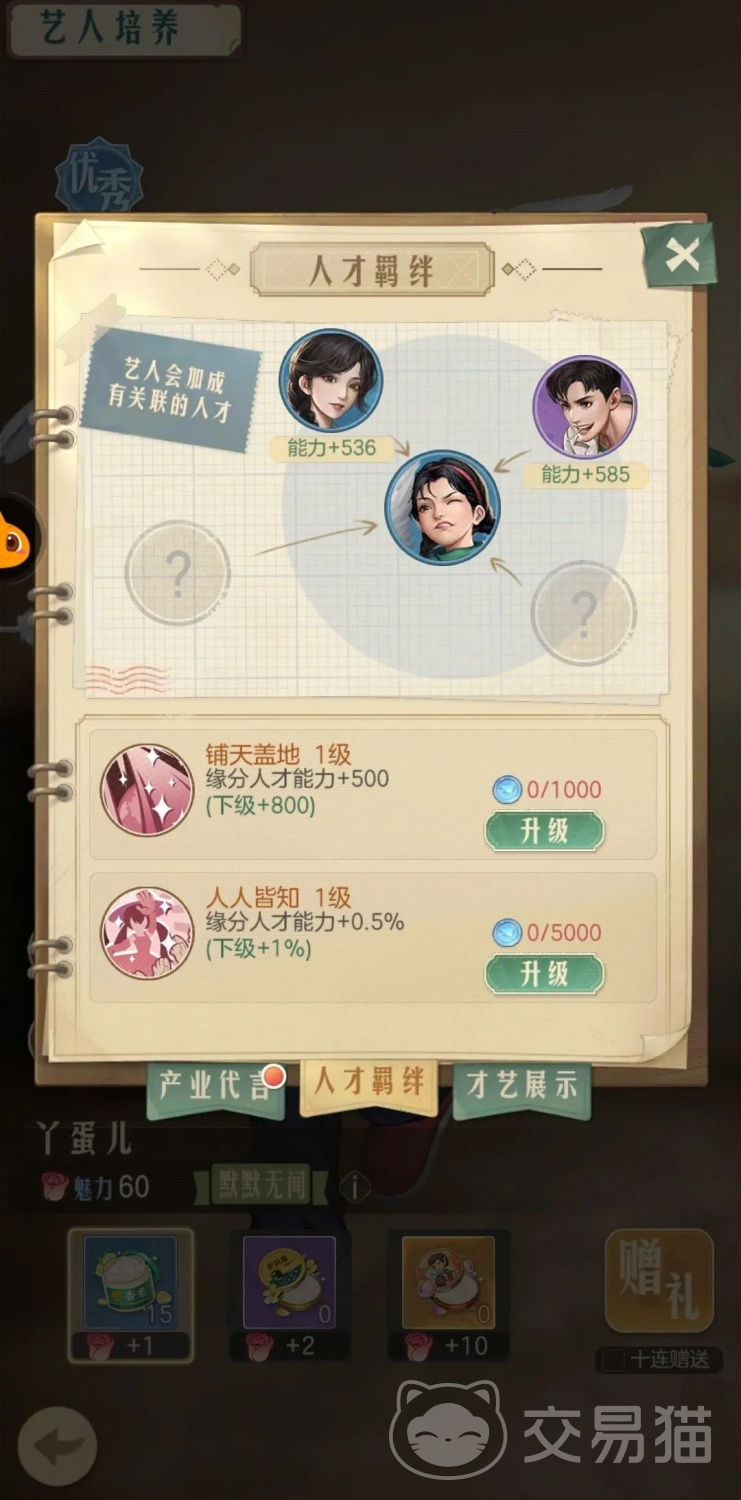 那么在这些艺人当中,有哪些是比较推荐大家优先培养的呢,比如说人才吧,就比较推荐大家先去培养“郑经理”,那么对于艺人来说,比较建议大家先去养的就是“海燕”了,她专属名气晋升可以得到宣传经验的加成,提升人才羁绊,还能将人才能力值加强,对于前期帮助非常大。
