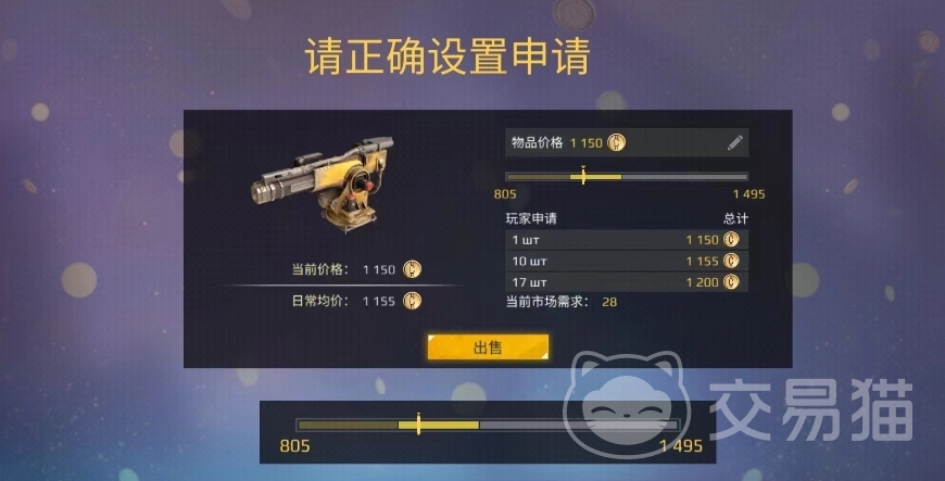 最后玩家需要注意的就是在市场上是有一定的最低收购价,如果最低收购价是1元,那么我们在出售的时候设置的价格就要是1.01,一定要比1元多一点点,否则是无法完成交易的。