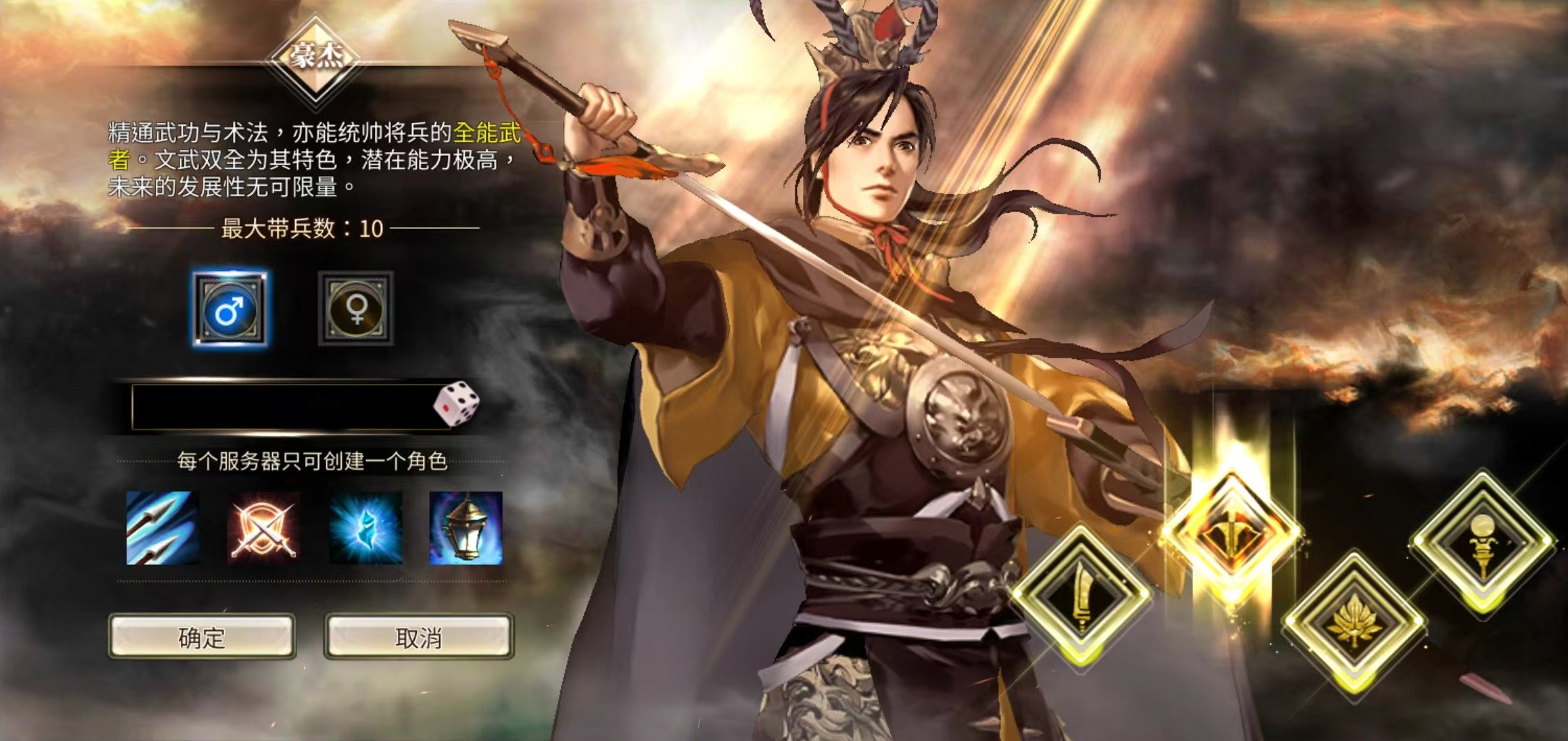 这一类型的玩家精通术法和武功,既可以成为统帅带领士兵,又可以发挥出自身的特点,堪称是文武双全。拥有很高的潜在能力,是现在发展性最强的职业之一。选择豪杰的玩家在前期或许会有一些困难,因为前期优势展现的并不明显,后续等到各项强化条件提升起来之后,输出就会非常可观,而且使用起来也很灵活。该职业对于硬件要求比较高,所以推荐氪金玩家选择。