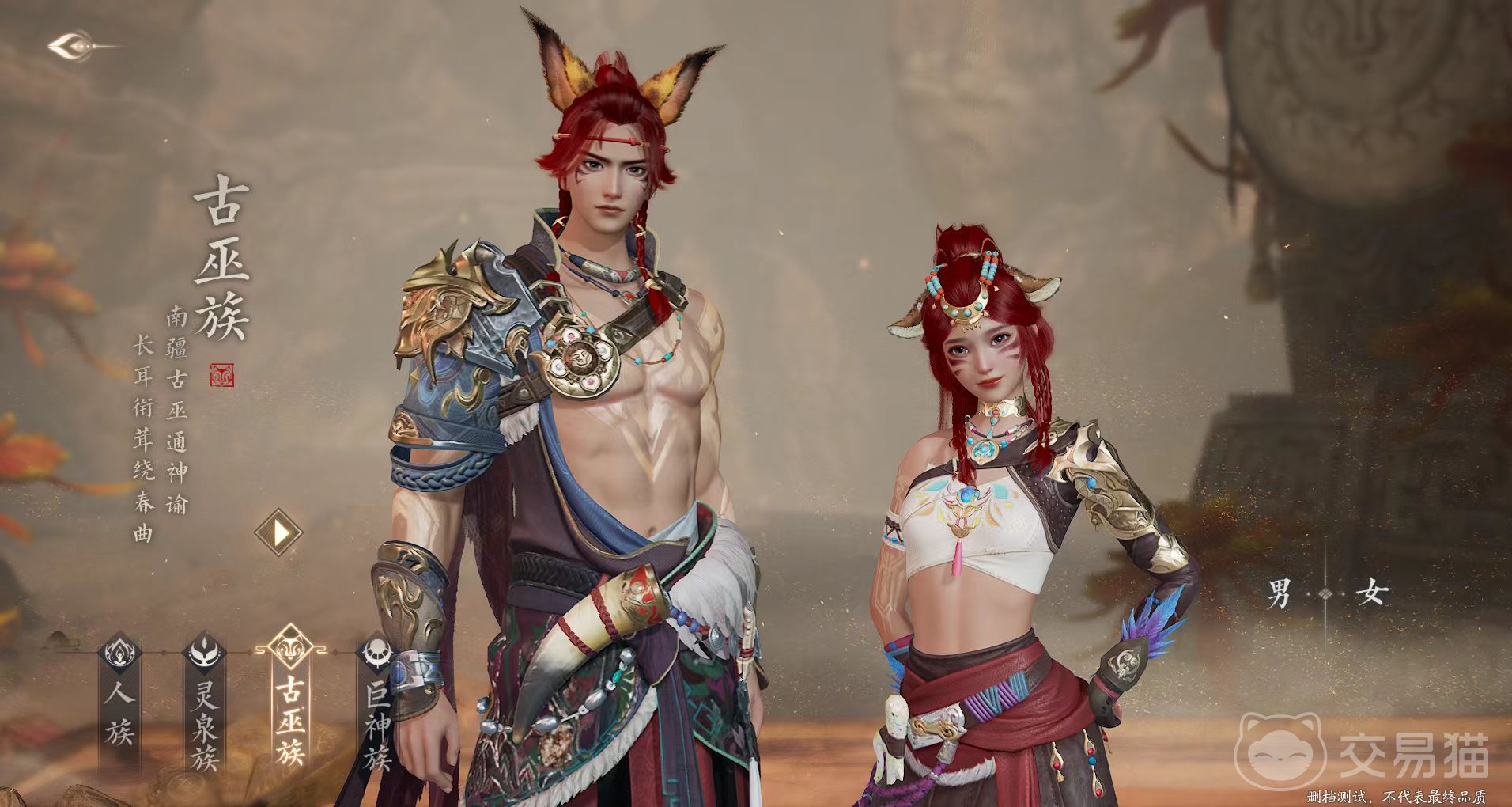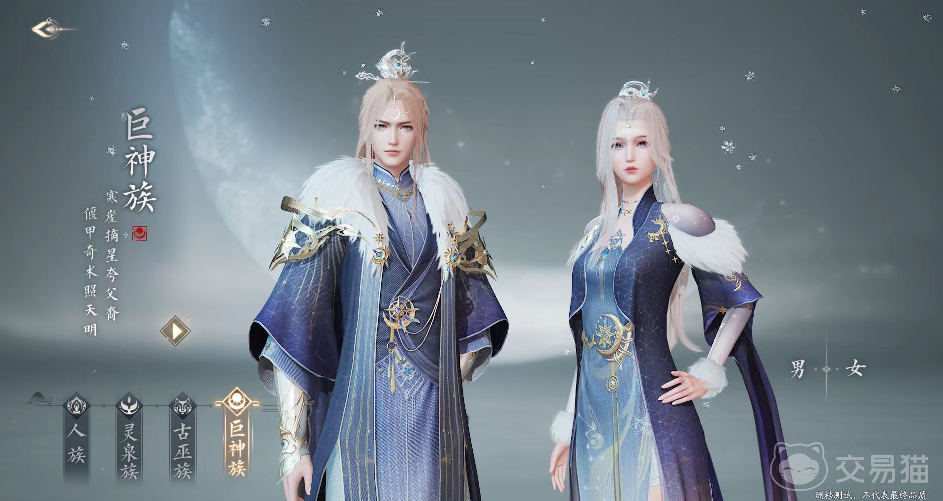古巫族属于上古魔神蚩尤的后裔,外观方面拥有兽的特征,例如兽耳和长尾等,身材普遍矮小且灵活。在服装中也有很多皮毛、兽角等装饰品,还有神秘图腾元素,他们的脸上拥有一些神秘纹路,古巫族拥有独特的变身能力,可以幻化成各种灵兽,在解控时候会出现灵鹿虚影。巨神族是上古大神夸父后裔,身材高挑精通机关,擅长使用占星术,在夜晚能召唤星辰阵法。装扮方面普遍比较华贵雍容,服饰上还有很多星辰元素。