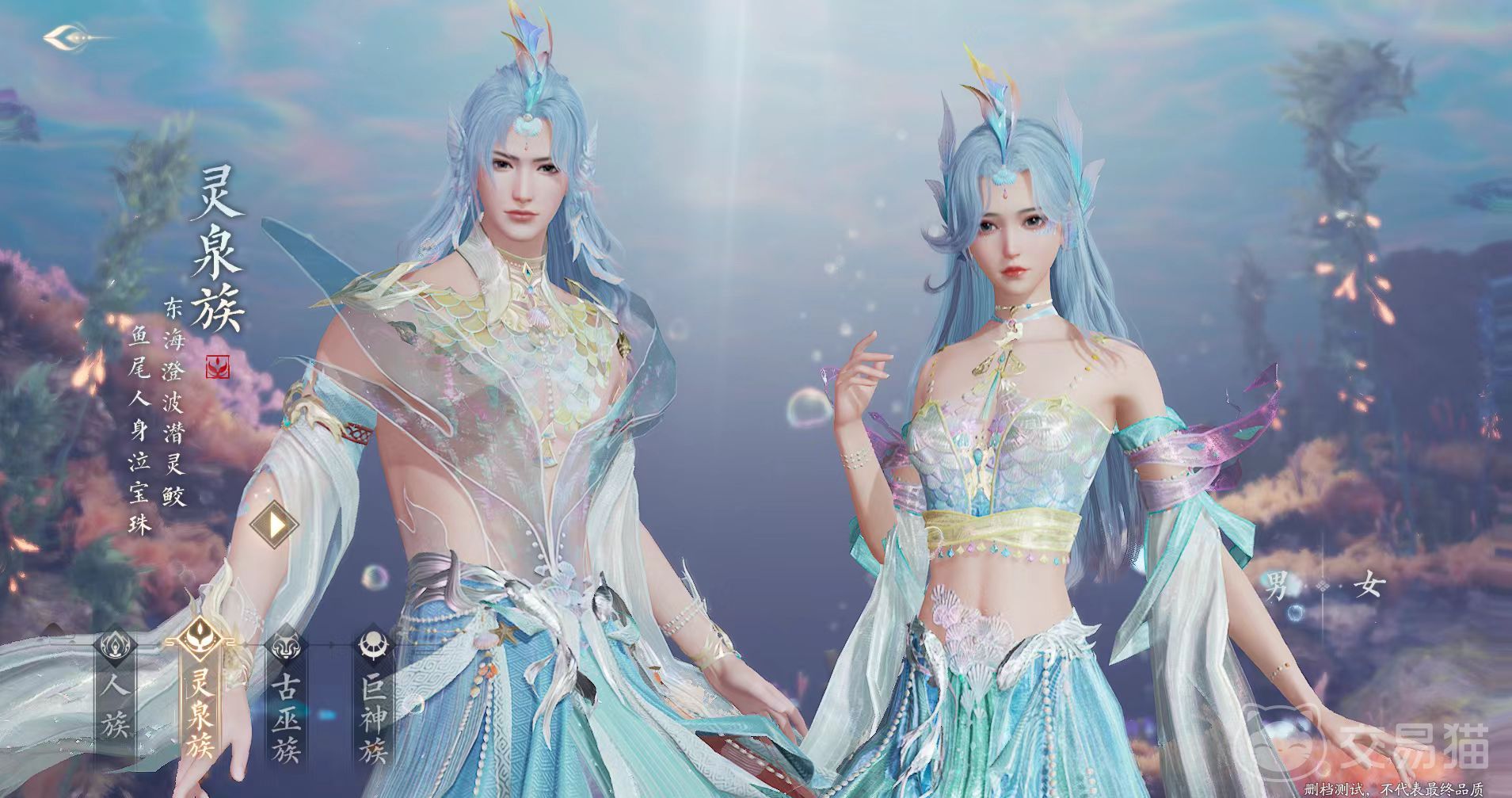 先来从外形方面做一下区别,人族属于女娲后人,身材匀称,知天理,日常装扮以儒雅的长裙和长衫为主,在解控的时候拥有独特的仙鹤以及山河特效。相比于其他种族,其实小编并不推荐大家选择人族,首先是外观并没有出彩的地方,也没有明显的优势,各个方面非常均衡,也可以说是平庸。灵泉族属于龙族的后裔,精通音律,有鱼和人两种不同的形态,在陆地上的时候为人形,进入海中就可以幻化出鱼身。外形方面也很有鱼类特征,拥有长水蓝色长发,解控的时候是一尾水形成的鱼,非常通透。外观方面最好看的应该就属灵族,尤其是选择灵族的女性角色,更是将自身特点展现了淋漓尽致。