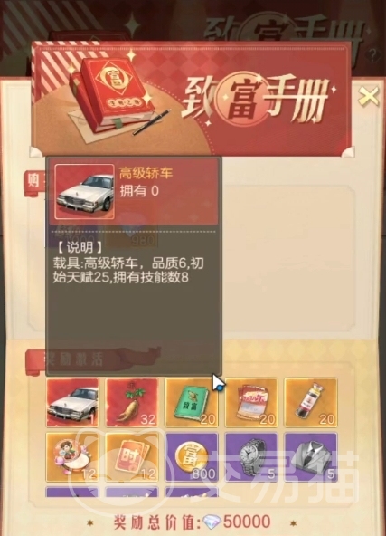 第二种方法,玩家可以通过参与活动获取,我们无论是参与致富手册还是成长任务,只要努力的去完成对应的任务,提升等级都是能够得到物资奖励的,例如人参、轿车等等,而且轿车的价值也不是很高,玩家们积攒一段时间之后就能轻松获取。