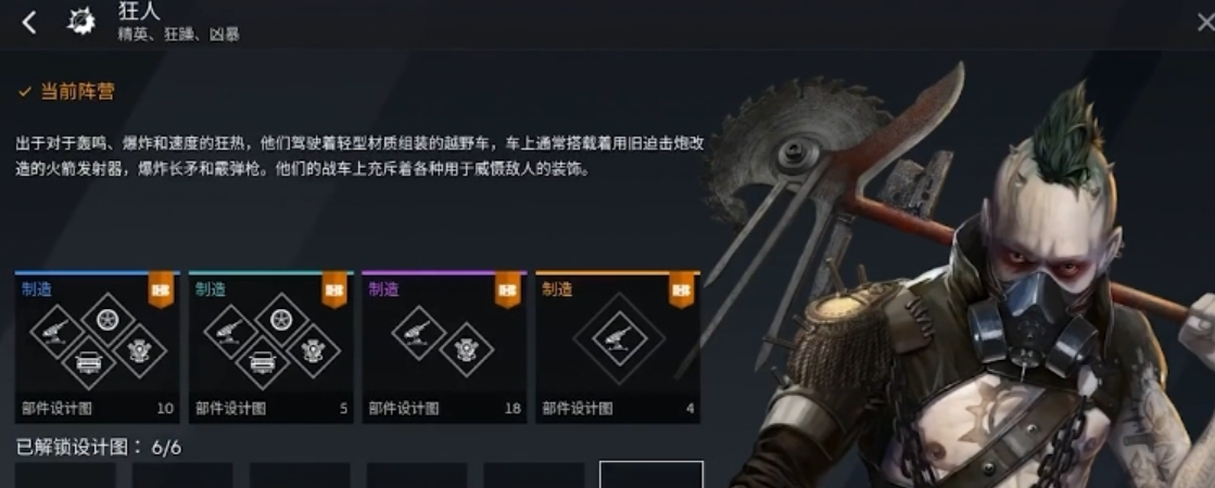 对于喜欢近身肉搏的朋友来说,则更加适合选择狂人阵营。因为这类战车的机动性非常强,日常更加适合近距离作战。并且你还能解锁大量轻质零部件,另外也可以携带各种适合近战的武器。例如刺刀、长矛,这样即可解锁更多的优势,不过唯一的缺点就是远程作战能力差。所以为了弥补这个短板,大家最好将部件装的愈加牢固。