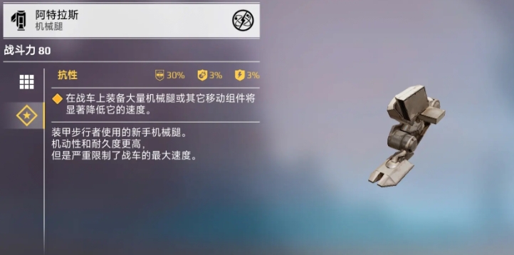 在玩家一开始进入其中的时候,可去选择战车秒差距来获取普通品质的机械腿“阿特拉斯”,随后也能迅速解锁稀有品质的“泰坦”。