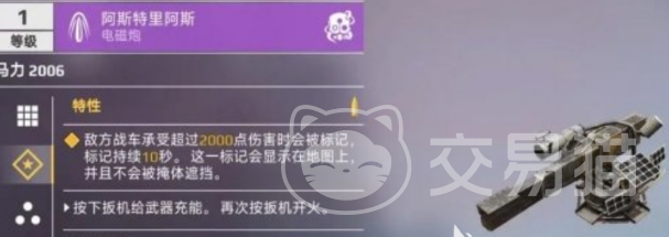 而阿斯特里阿斯就是电磁轨道炮中的代表,并且还拥有特殊的侦查技能,可以检测周围的敌方目标,给自己提供一定的生存能力,当敌方战车受到2000以上伤害的时候,这个战车的位置就能被我们看见,在地图位置上会进行红色标注,且在10妙内无法通过掩体技能进行逃避。