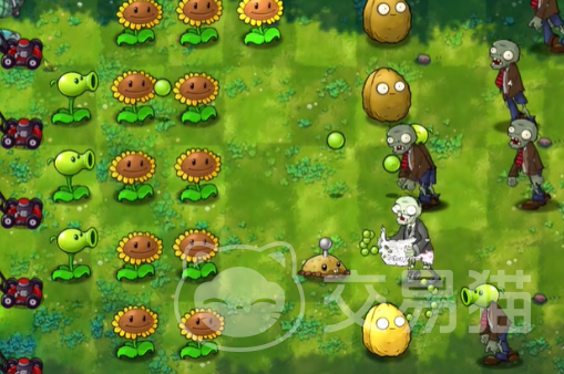 在这一关卡中,大家可以使用5种植物基础模型,分别是大家所熟悉的坚果,向日葵,豌豆射手,樱桃炸弹和土豆。这样两两结合所产生的融合种类自然就更多了起来,而且有了土豆的加入,整个战斗就会简单很多。开局还是同样的先在左侧种下一列向日葵,注意不要种到最左边,然后在一路右侧中间位置放下一个坚果,用于阻挡对方。