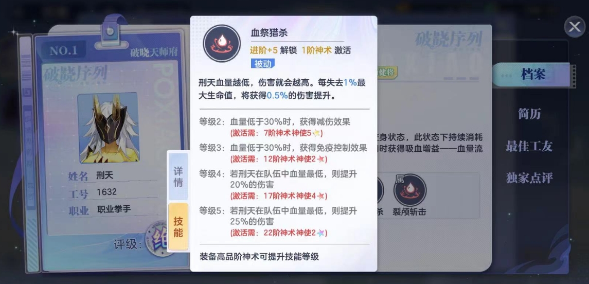 关于破晓序列刑天厉害吗的内容就介绍到这了。从技能效果来看,刑天还是很厉害的,特别是技能强化满了以后,免疫一切控制,直接近身和敌人作战,血量越低,输出越猛,绝对是狂战士般的存在。