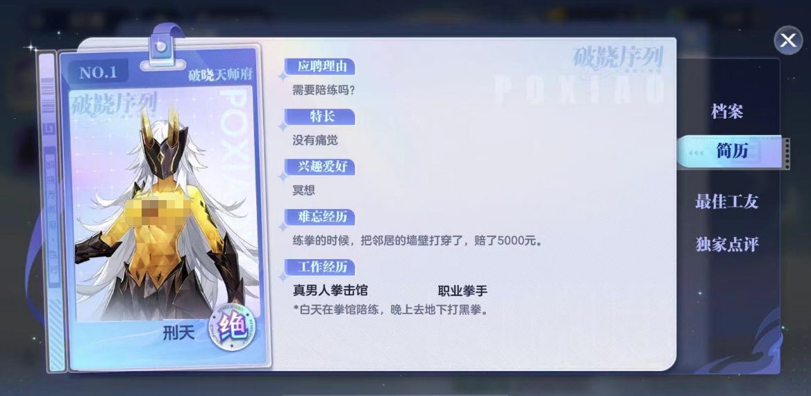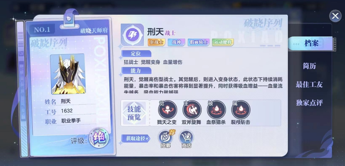 刑天在游戏剧情里的职业是一名拳击手。他为了赚更多钱,除了白天在拳馆工作外,还会在下班后去打黑拳赚取灰色收入。他在游戏中的定位是一名战士,属于前排角色。很多玩家对他产生了兴趣,想知道破晓序列刑天厉害吗?那么,小编今天就给大家带来关于刑天强度的详细介绍,一起来看看吧。