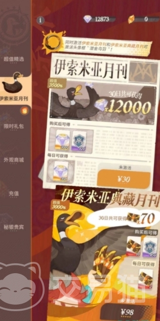 这样来算的话,其实秘闻手记想要升级还是需要不少钱的,如果是想要小氪的玩家建议大家还是基础的就够了,毕竟每一个层级的月卡在氪金数目上面都会有所提升,想要购买这个秘闻手记的玩家直接去商城当中,购买伊索米亚的月刊就可以啦。