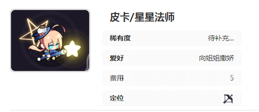 星星法师是一个少女,浑身上下都会散发孩子气,和姐姐之间有着明显的性格差异。和成熟的奥德莉放在一起比较,这只不过是一个小孩子。总会偏爱一些看上去非常可爱的抱枕或者是玩偶。
