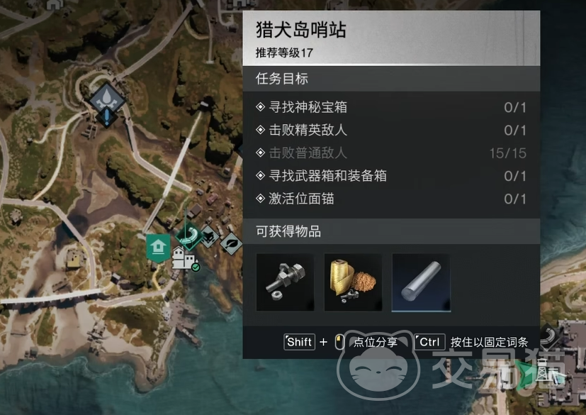 想要完成任务,我们首先要找到位于地图右下角的猎犬岛哨站坐标。到达目的地后,朝着东方向前进,直至抵达哨站的入口。在此处,若要开启宝箱,需先击败一名精英敌人,并获得其权限卡。