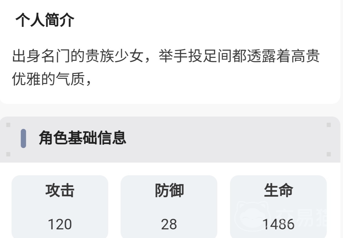 从芙蕾雅这个角色外形走的是高贵冷艳风格,虽然出生于豪门但天生喜欢冒险的她在成人之后就加入了自由探险者组织,火属性的她在游戏中的定位是强攻类型的输出角色初始攻击力为120、防御能力28、生命值高达1486点。