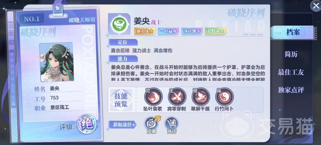 以上就是对破晓序列姜央强吗的内容介绍。从技能效果来看,姜央的两个技能都是输出技能,并且伤害极高。然后被动技能提供的承伤效果也是很实用的。对这个角色感兴趣的朋友可以培养体验下。