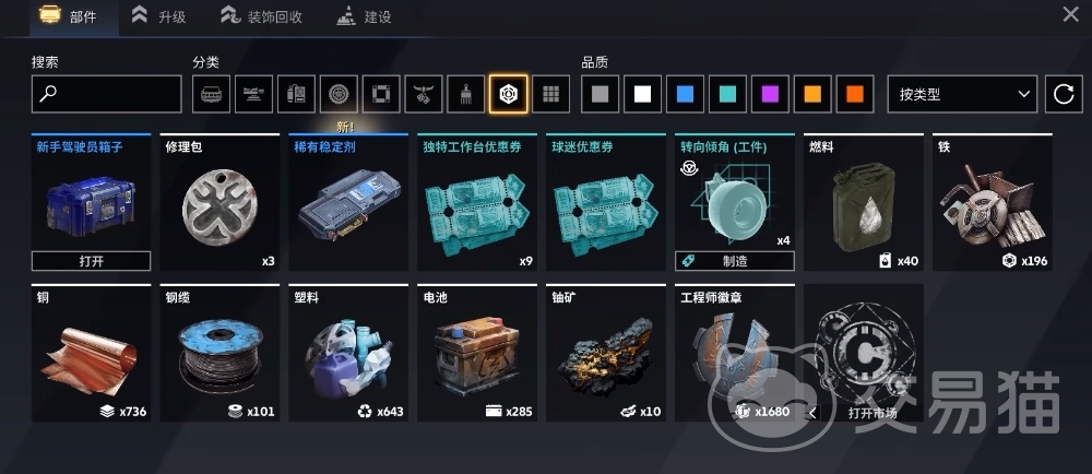 6、社交交易。这个游戏中的pvp模式是组团模式,也是结交游戏好友的方式。在游戏中有了社交好友,在资源上就多了一个获得渠道,需要的蓝图、组件甚至是座舱都能通过好友之间互相赠送或者是交换来获得。