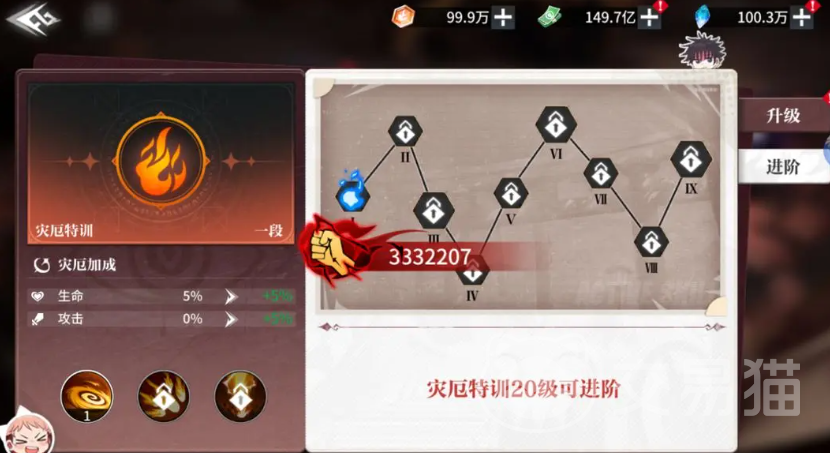 建议玩家在自己的梯队达到了推荐战斗力之后再进入特训战场,在整体来说特训模式是游戏中一个非常重要的资源关卡,如果玩家想要培养更为强大的阵营角色,则一定要完成所有的特训模式,值得一提的是,只要玩家在某个特训模式之下完美通关了,后续玩家直接进行扫荡即可获得奖励,特训总共有九个阶段,这九个阶段也代表着不同的难度,但是特训带来的灾厄奖励也可以提高基础的生命值和攻击力,建议玩家在升级角色的同时,也要兼顾特训的等级哦。