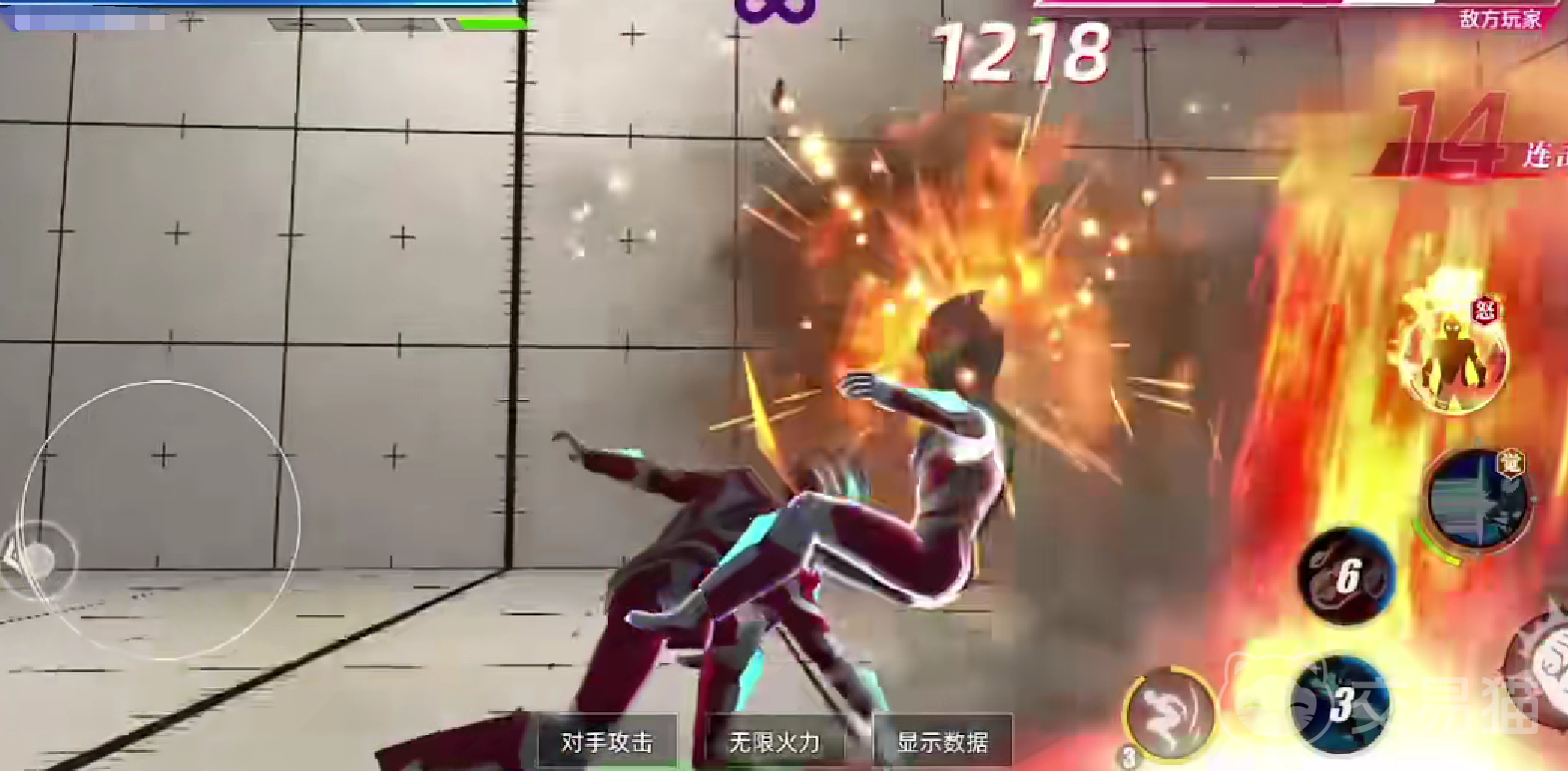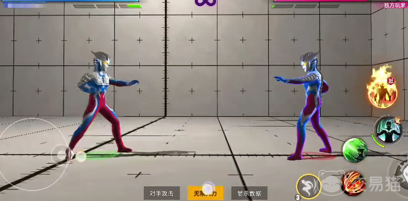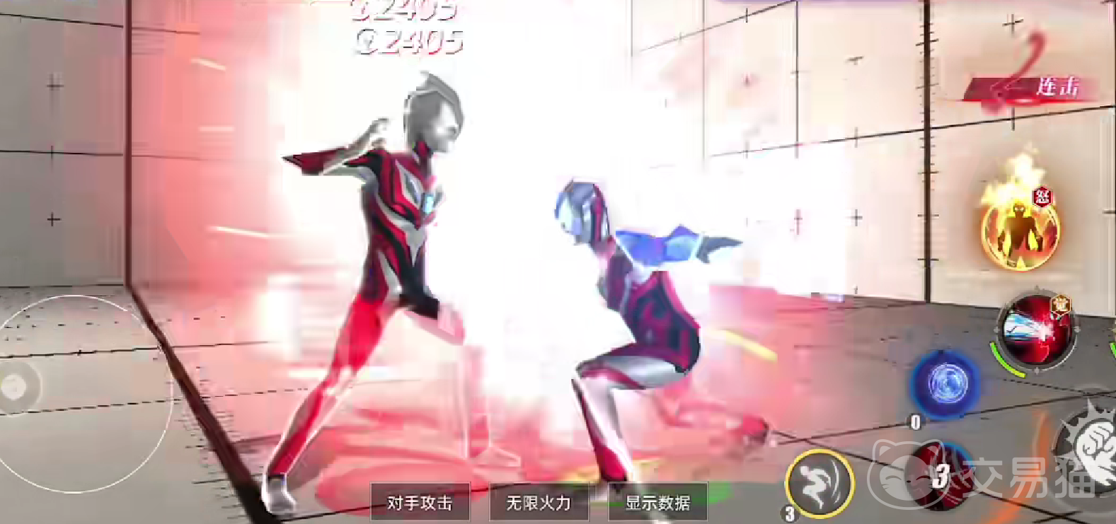 当玩家的怒气达到了一定数值的时候,就会在键盘的右上角出现一个按钮,玩家直接点击就能够释放终极的爆气大招,每个奥特曼的爆气大招都是不同的,例如赛罗的爆气大招是赛罗飞踢,会对前方的敌人造成火属性的伤害,而迪迦的爆气大招则是物理攻击,能够对敌人造成连续的拳击打击。