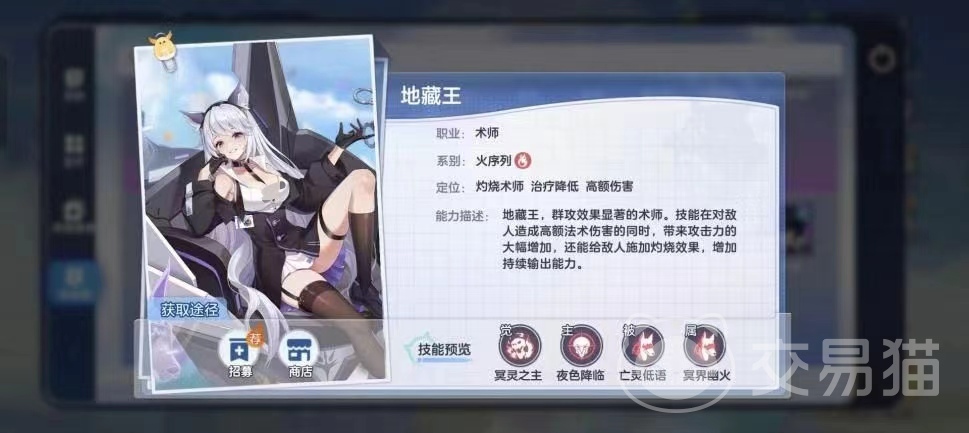 被动技能是亡灵低语,使用这个技能,就能在对敌人造成伤害的同时,再对这些敌人叠加30%的重伤害,冥界幽火技能可以让防御,生命,攻击属性都得到5%的提升,而且当技能等级越高,属性提升的也就会越多,在前期用地藏王去开荒还是很好用的,只不过到了后期的时候,整体的伤害并不是很突出,强度就不是很高。