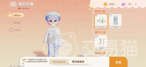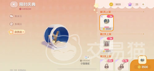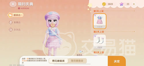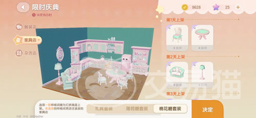 最后再来看一下限时庆典,这里每天会上架很少的1-3款神秘道具,一直延续到庆典结束日。平时是看不到后面会上架什么的,只有当天登录才能知道。而且这里的道具都是一折销售哦,相比到对应的家具店或者服装店购买,这里可是划算多了。