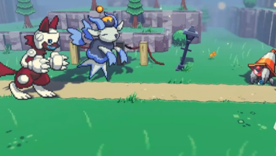 玩家在进入到游戏之后,地图的右边可以看到湖中心的小岛登上,小岛有一个女的npc,两个路锥蟹,还有两座雕像。玩家所需要做的就是将路锥蟹打败,在将其打败之后需要和女npc互动,互动完毕后朝着左边继续走,很快就可以抵达一个新的城市。