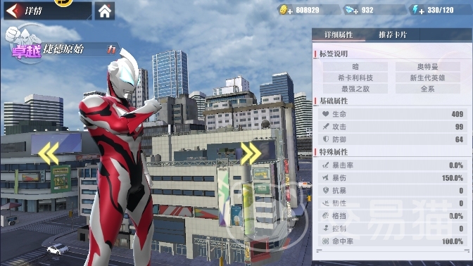 这个捷德原始就是游戏中一个紫色卓越品质的奥特曼,在游戏中属于抽卡可以获取的一类奥特曼,也是力阵营当中的一个角色,标签中还表明了这是一个全系奥特曼当中之一,也是最强之敌,在基础属性上面三者的数值都不算低,生命值达到了409,基础的攻击也有99,防御上面则是64,所以基础的数值其实还是比蓝色或者是绿色品质的角色好很多。