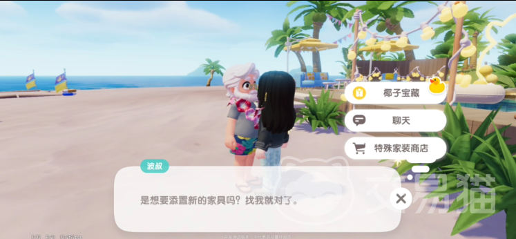 倘若玩家想通过砍伐椰子树来获取椰子,便需要前往地图左下角的紫光沙滩,在沙滩上寻找到NPC“波叔”,与其互动便可接取到潮流季的任务“椰子宝藏”。