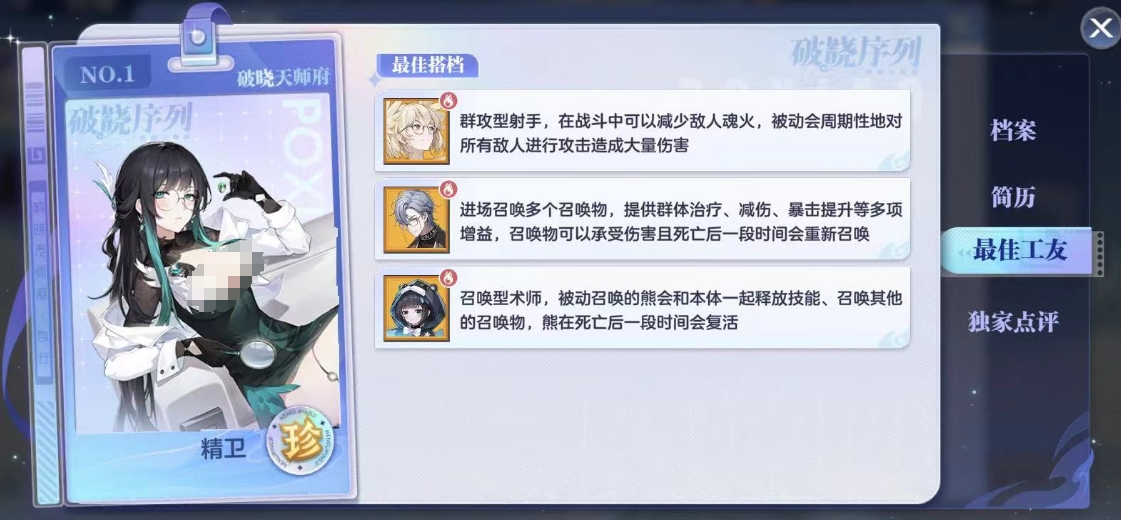 以上就是对破晓序列精卫怎么玩的内容介绍。这个角色的强度肯定是在线的,输出能力并不弱,喜欢这个角色的朋友可以花费资源培养她。成型以后,这个角色在战斗中的表现肯定不会让玩家失望的。