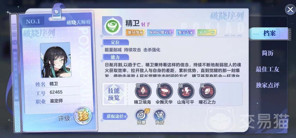 这款游戏的养成系统做得特别好,玩家可以对角色进行培养,强化他们的技能,然后和他们一起战斗。游戏角色设计得很有特色,精卫就是其中一名角色,她的定位是一名输出。很多玩家并不知道破晓序列精卫怎么玩,对她的技能也不了解。接下来就为大家详细介绍下精卫这个角色,一起来看看吧。
