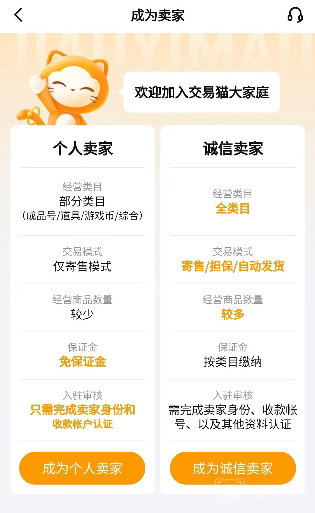 玩家想要出售自己的账号,要申请成为卖家,是个人卖家还是诚信卖家看你选择。个人卖家没有保证金,但是可以经营的商品类目比较少。此外,如果成为优质诚信卖家,还可以享有平台寄售的权利,这样可以大大减轻卖家的负担。通过平台寄售,卖家不需要一直关注商品状态,平台会负责对接买家,卖家只需在交易完成后收款即可。同时,寄售卖家还将享受更多权益和服务,并且选择范围更广。