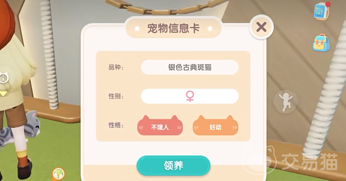 当你成功拥有一只小猫咪之后,然后直接打开我的爱好。点击养猫之后便可进入专属的猫咪小窝里面,然后值得注意的是,每个玩家可以领养的猫咪都是随机的。所以大家的猫咪品种以及造型都不一样,你也可以为它取一个好听的名字。然后选择性格,例如好动或者不理人。