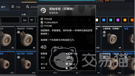 轻型车轮比较适合对耐久度要求,对加速重量要求比较低的战车。而中型车轮属于适中性能,大部分标准战车都非常适合之外,还有重型车轮比较适合高载量以及耐久度的重型战车。小伙伴们对于机械腿特别感兴趣,有很多地形较高,此时搭配机械腿可以随意驾驶合理走位。