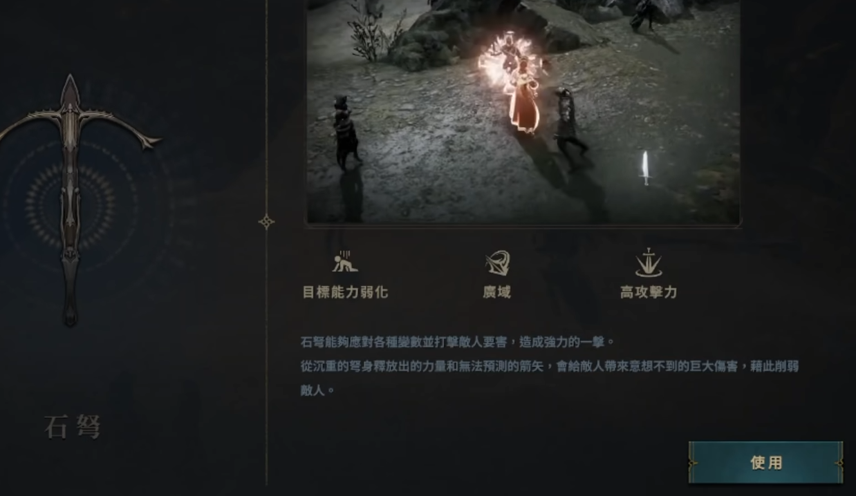 之后我们与其进行对话,他会让我们在8种特色武器之中选择一把,这些武器各有各的特点,之后玩家们遇到合适的武器也可以随时进行更换,这里建议玩家们可以选择远程类型的武器,这样在前期效率会高一些。