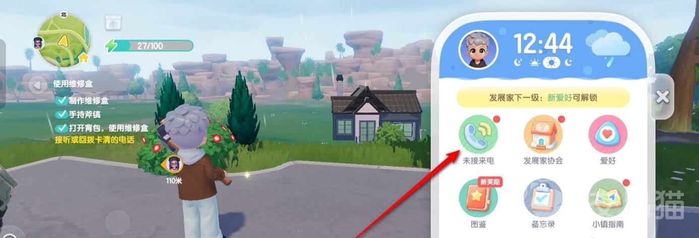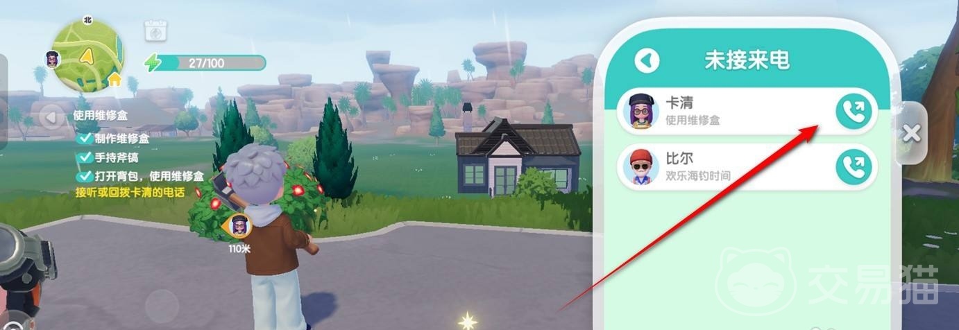 在心动小镇的手表里面只要只打开未接来电就可以看到自己没有接听电话,在未接来电的人名旁边还有一个回电话的标志,想要给对方拨电话的话只要点击一下回拨电话的标志就行。