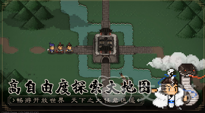大江湖之苍龙与白鸟的画面设计别具一格,它巧妙地结合了复古的像素艺术与传统武侠的审美元素,呈现出一种既古老又新鲜的视觉体验。游戏中的云雾、飞鹰、山水和细流等自然景观都经过精心雕琢,传递出一种属于东方的优雅和神秘。门派设定如青城派、雪山昆仑派等同样充满了浓郁的武侠色彩,使得玩家仿佛真的置身于一个古代武林中,激发着每一位武侠迷心中的江湖梦。