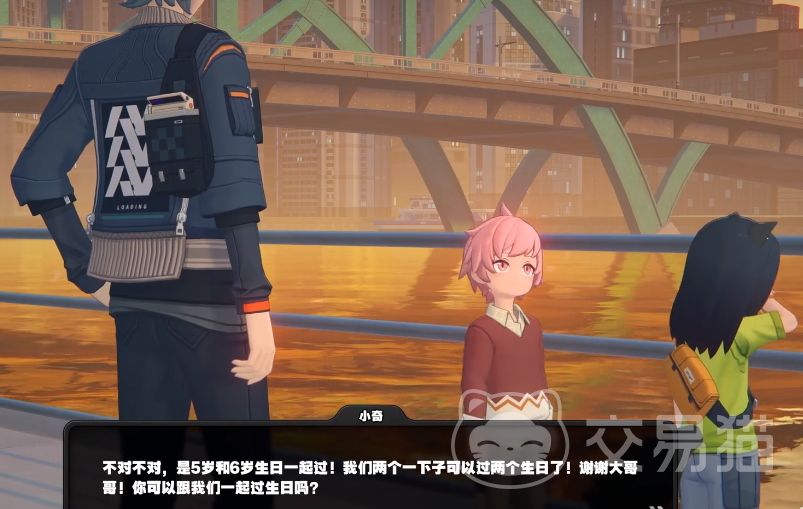 然后系统会指引玩家去江边和小朋友对话,通过对话得知这两个小朋友要过生日,玩家可以把蛋糕赠送给对方,两个人会在蛋糕上插上蜡烛,互相许愿,然后互送秘密纸条,为了可以让他们彼此能记住对方,在游戏里要帮这两个小朋友拍照留念,拍完照之后可以看到两个人互相写给对方的纸条,然后这个任务就完成了。