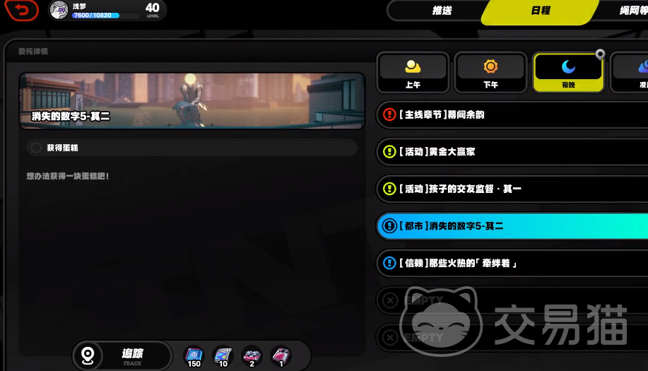消失的数字5其二任务是游戏里的一个日程任务,在游戏里需要想办法得到一块蛋糕,进入到这个任务之后,系统会指引玩家和角色对话,对话完成之后,玩家就可以得到一个小蛋糕。