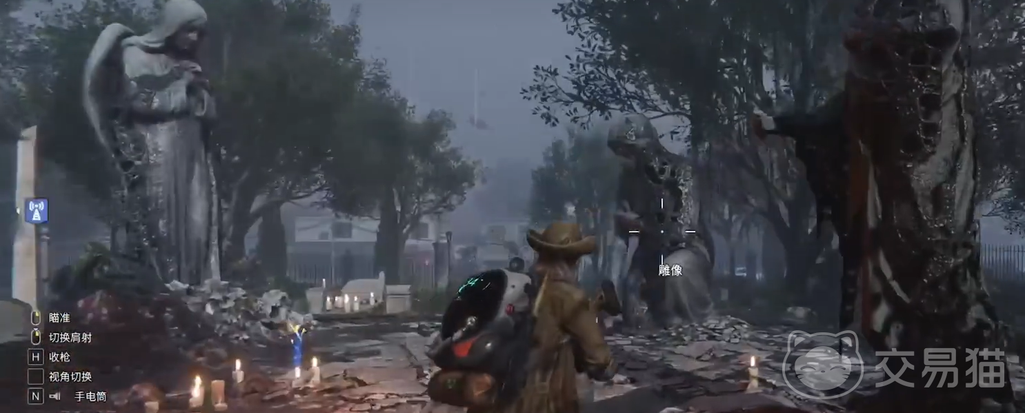 接着,将目光投向地图的西南方,那里有一座教堂。不过我们不需要进入教堂内部,而是转向旁边的墓园。在墓园内找到几座雕像,调整它们使其面向中心,完成任务后便能拿到奖励。