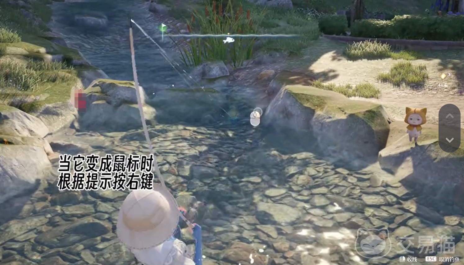 当鱼咬住鱼竿后,玩家需要连续点击a或者d键,进行收线中途不能停止,否则鱼会因此跑掉,地图中会对鱼的情况和位置进行显示,鱼快上钩的时候,会弹出鼠标的标识,然后右击鼠标鱼便可以上钩了。注意宠物在钓鱼的时候没有看见,不必担心当角色上岸后,宠物便会出现它只是在岸边观望。
