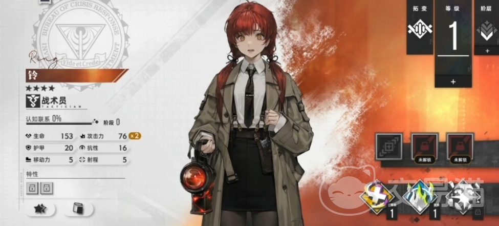 铃的封装体是铁路信号灯,铁路信号灯封装体与员的家乡有深刻的联系,带来的效果是能量增益,在每个回合开始时,铃自身2格范围内的己方单位获得5点能量增益,玩家可以利用这个技能为铃及周围的队友快速积累能量,从而更频繁地使用技能。