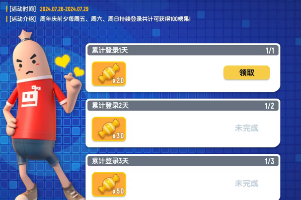 整个七周年庆典期间,玩家们通过简单的参与,就能收获总计700颗糖果的丰厚奖励。这些糖果不仅是游戏中的货币,更是玩家与香肠派对之间深厚情感的象征。它们可以化作游戏中的各种道具和装备,助力玩家在冒险的路上走得更远、更稳。这场庆典的特点在于它的分阶段进行和低门槛参与。每个阶段都有新的惊喜等待着玩家去发现,而无需复杂的任务或高昂的代价。在这里希望大家都能够参加这场活动,不仅仅是为了获取一些奖励,更是为了度过这个难忘的节日。