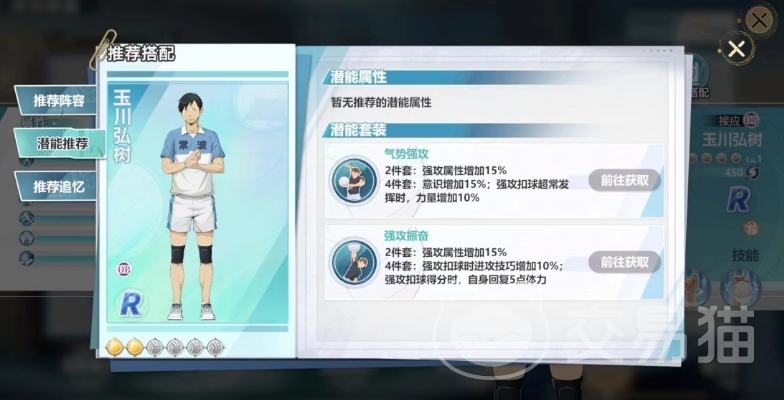 使得他在进行强攻打法时更为致命,7%的增加对于整体攻击力是一个不小的提升,特别是在面对防守强硬的对手时,这个增幅可以提供更多的得分机会,在比赛中,大家可以利用玉川弘树的这一特性,安排他在关键时刻进行强攻,尤其是需要迅速得分或改变比赛节奏时。