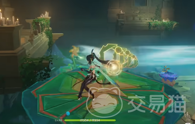 试炼任务的上半部分需要玩家操控飞鼠通过攻击让场景里水柱可以不断升起和下落,首先需要走到中心区域靠近这只纸蛙,纸蛙会让场景里的荷叶被水柱顶起,这时候荷叶上的小花就能按照预期的角度吹风,在这时候玩家可以操控这只飞鼠沿着场景里面的圆环方向像一般的冲击。