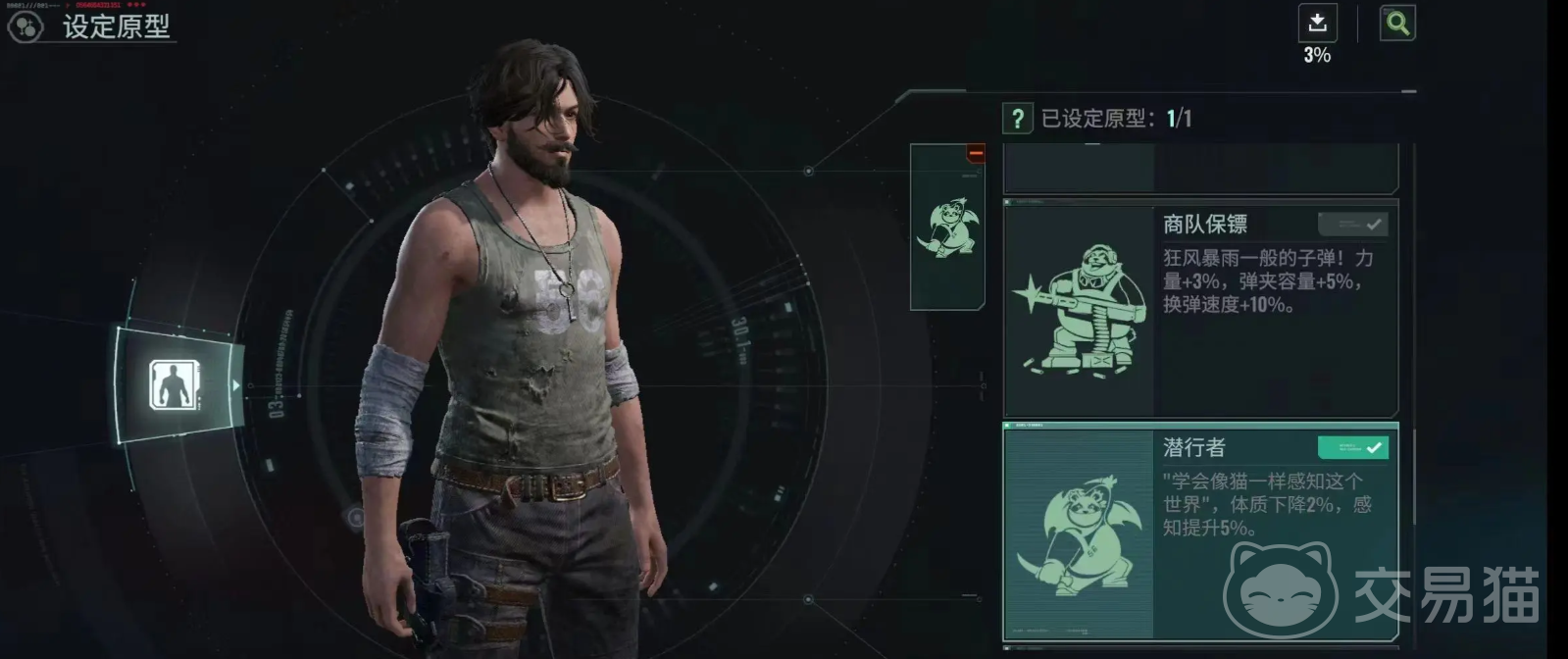 商队保镖的效果是提升自身3%的力量、5%的弹夹容纳量和5%的换子弹速度,这个原型同样也是适合战斗的,不过因为力量的提升,更偏向于使用加重型武器,不过需要注意的是这种加重型武器虽然伤害高,但是会很费子弹。