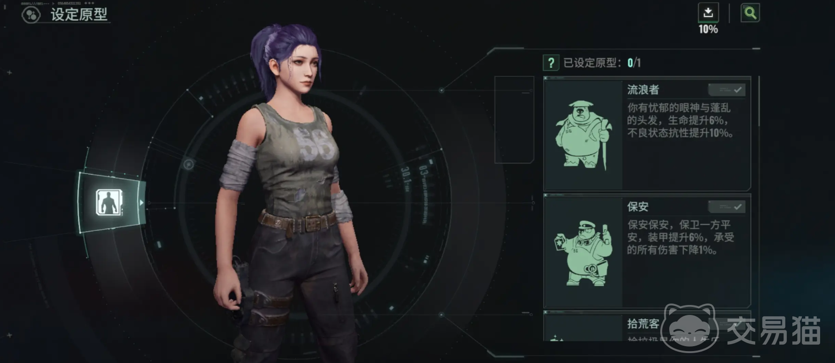 流浪者的效果是让生命力提升6%,对不良状态的抗性提升10%,也就是说这个原型的生存能力会偏强,哪怕是在充满辐射的地区也会比其他原型更晚一点进入辐射状态,这对于我们收集资源等都是有利,流浪者整体来看比较适合想要生存冒险的玩家。