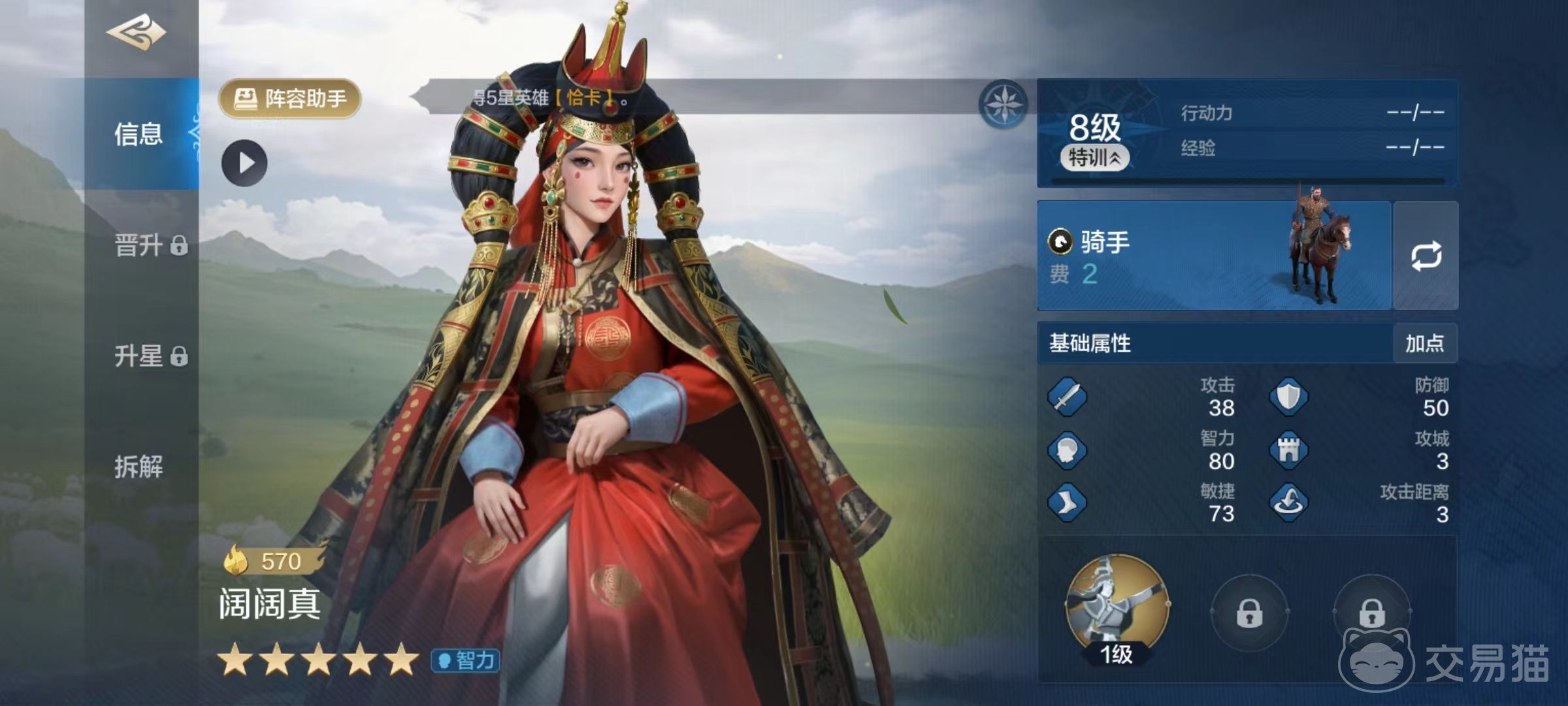 研究世界启元中的不同武将技能和强度是玩家非常喜欢做的事情,为了给大家展现游戏中武将的效果,小编将详细为大家介绍,今天先来看世界启元阔阔真怎么样。阔阔真属于游戏中的五星级智力型武将,但是在面板属性方面,智力却并不算非常优秀,它主要特点在于自身自带技能上面。