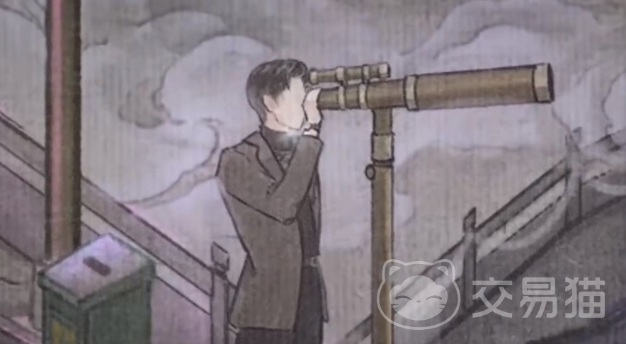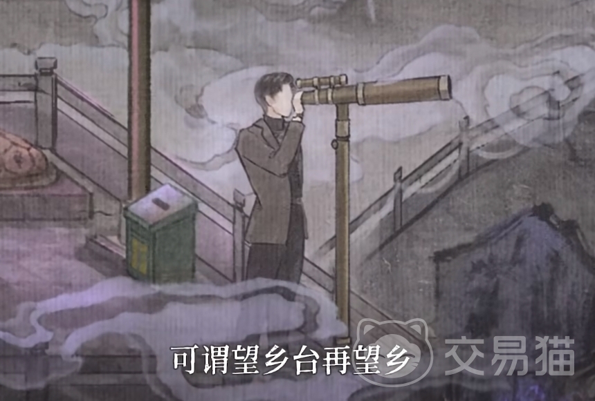 这个西装男首先出现在【望乡台】上,【望乡台】号称是奈何桥后面的一个土台,也是进入阴间前最后能看见的一个建筑。他站在这里利用这里的望远镜看向桥面,这个望远镜需要投币后才能使用,西装男在使用时还配了关于思乡的内容,而在西装男的胸前还有个泪滴样的闪光,可见他通过望远镜看到了亲人所以落下了一滴思乡的眼泪。